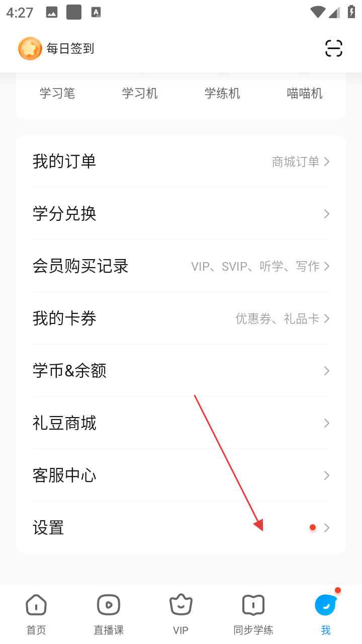 2、在个人页面,能看到【我的订单】【学分兑换】等选项,若要进行账号等相关设置,点击【设置】。