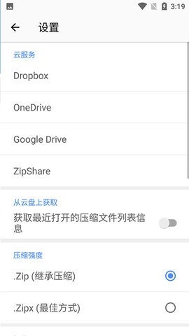 云集成(GoogleDrive和Dropbox),可轻松访问电脑端(WinZip21)或Android设备上最新打开的压缩文件。