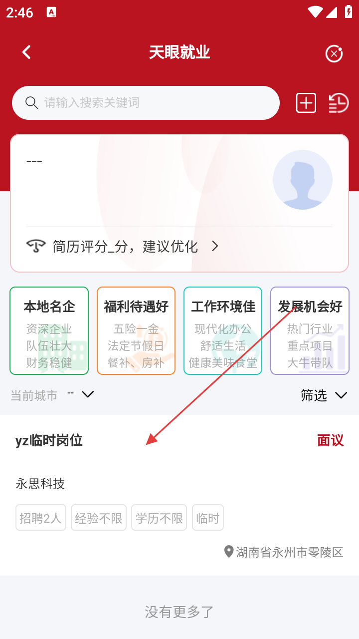 2、在“天眼就业”选心仪岗位,如yz临时岗位,查看详情。