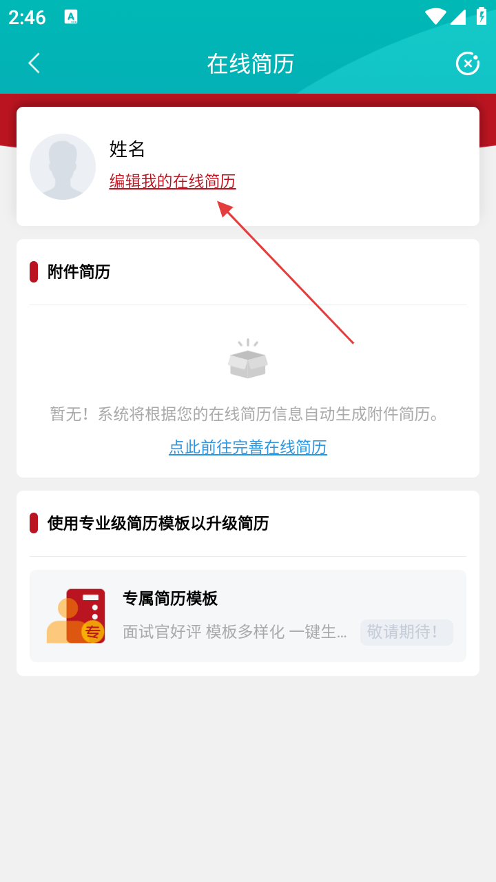 4、在在线简历页,点【编辑我的在线简历】完善求职信息即可投递简历。