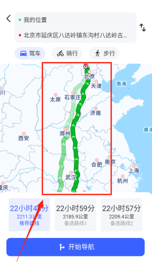 2、其次输入目的地,系统将实时分析并展示多条路线供您选择,智能的算法选择最适合的路线。