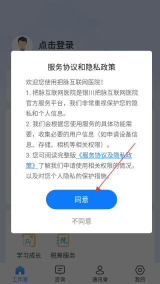1、打开应用查看协议点击同意。