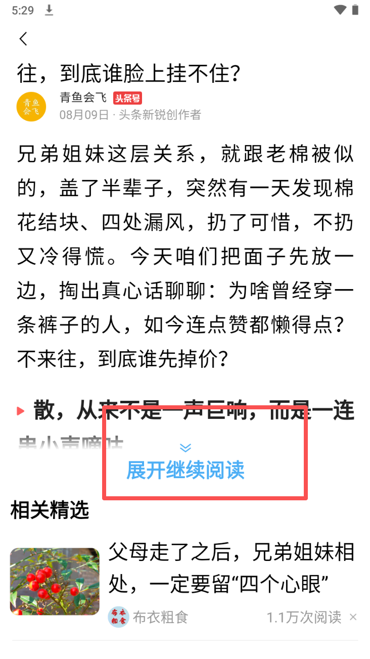 3、在文章页面,点击“展开继续阅读”按钮,阅读全文内容。