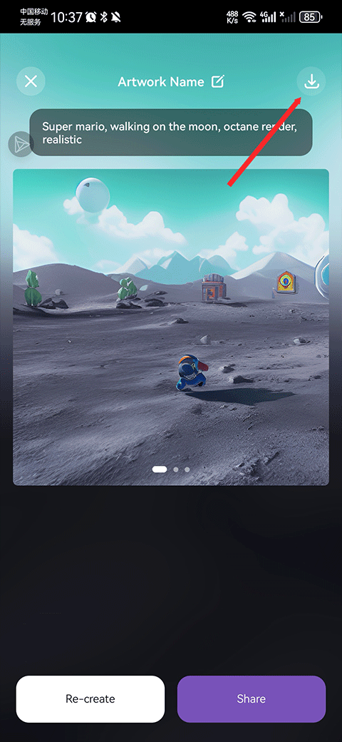 5、最后软件就会为你生成AI图片啦,满意的话可以点击右上角下载按钮将图片保存到相册哦
