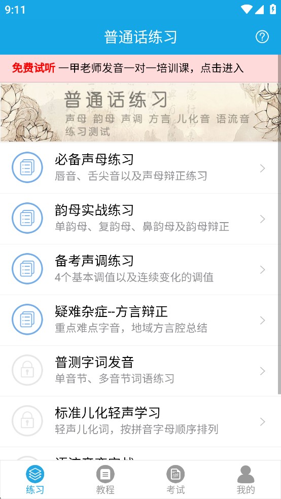 包涵语流音变练习含变调、轻声、儿化等,还有播音主持必练绕口令等学习,有专项训练课程,有很多普通话教学老师共同编制,足不出门,就能有效提升。