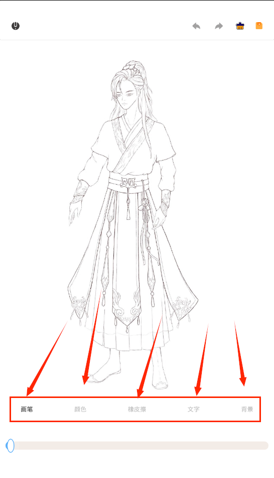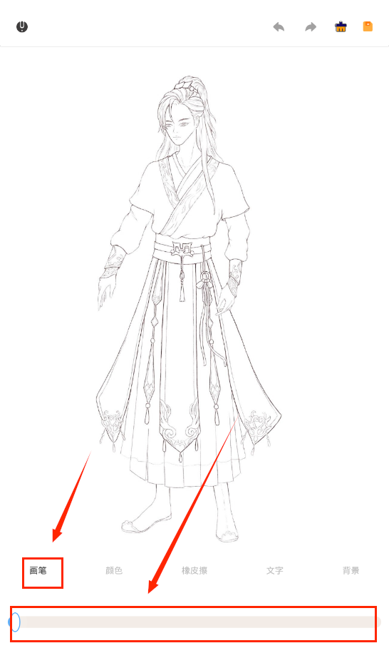 3、画笔下面可以调节画笔粗细,往左调画笔越细,往右调画笔越粗。