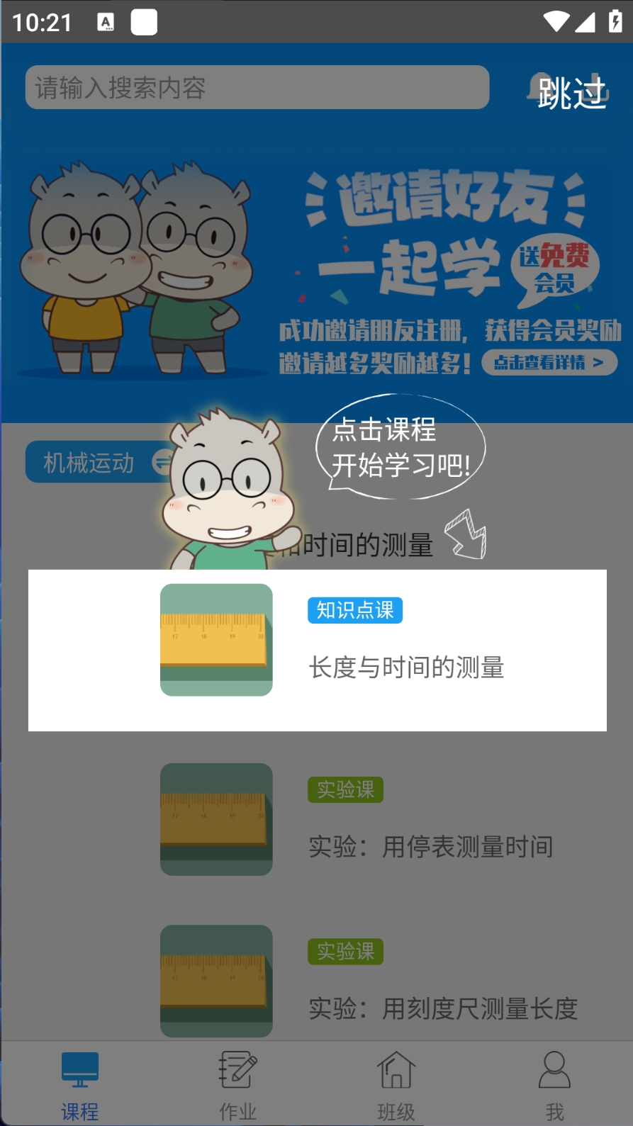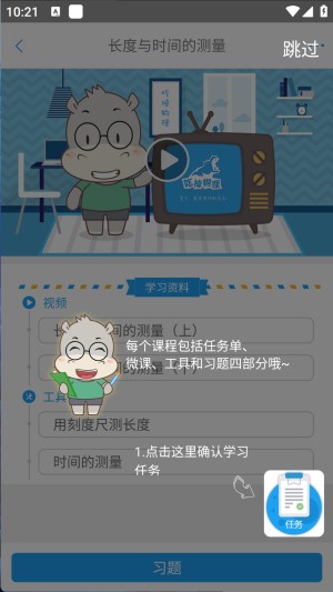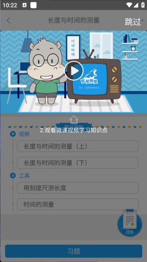 3、选择课程,点击“长度与时间的测量”开始学习。