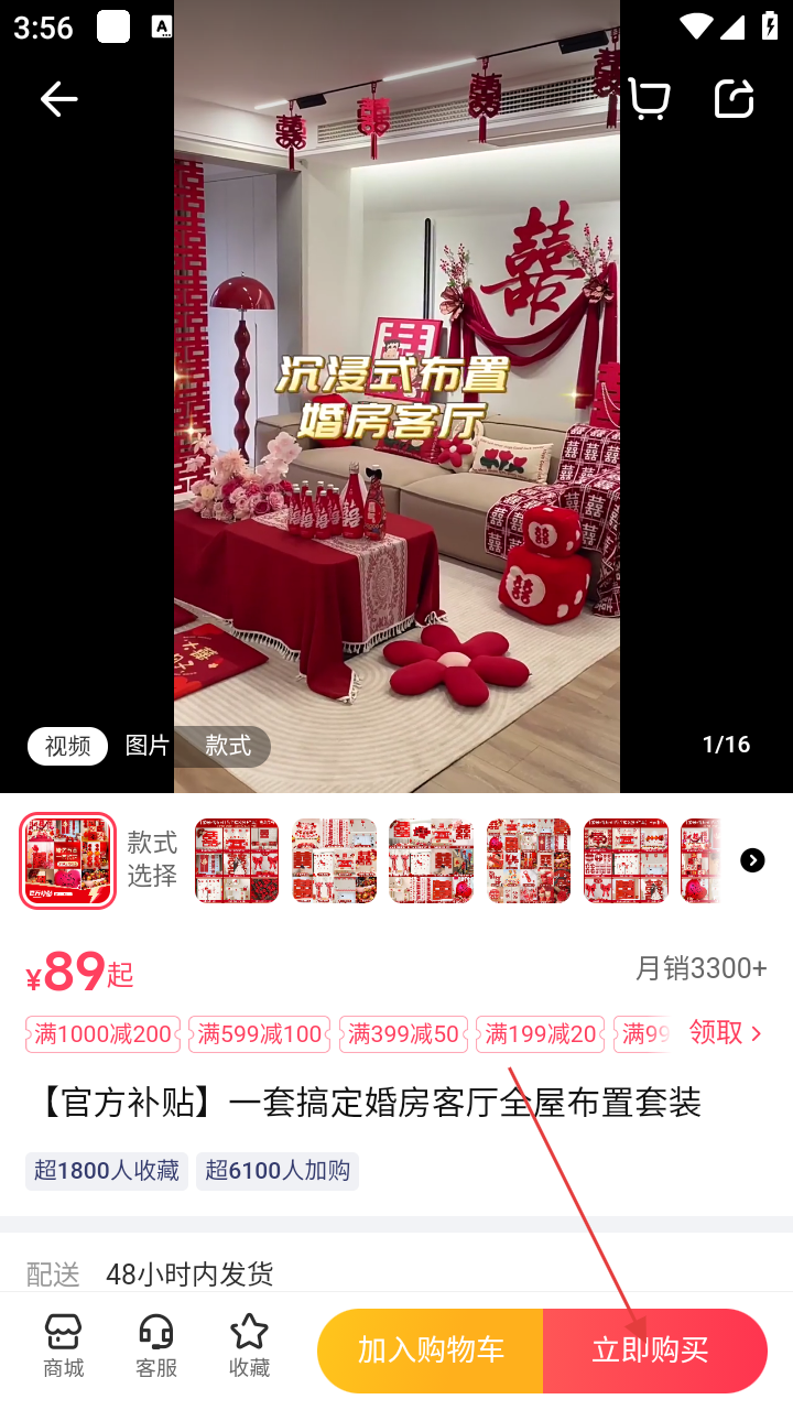 4、在商品详情页面,若满意可点击【立即购买】按钮,进行婚房布置套装的购买流程。