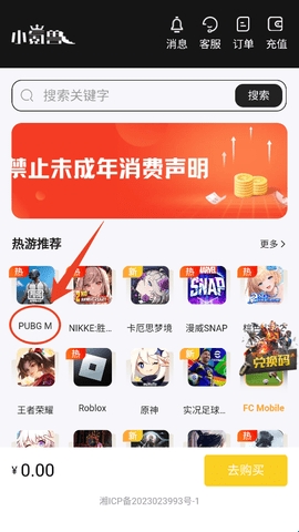 1、进入平台后我们先要找到自己要充值的游戏,例如我现在想充值“PUBG M”,找到后点击一下。