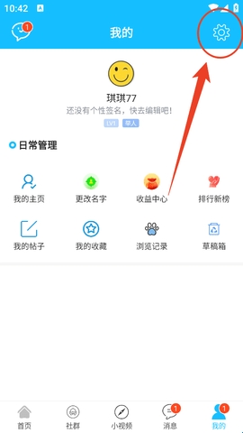 1、在“我的”页面点击右上角设置。