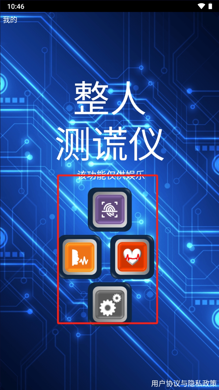 1、在应用首页点击测谎仪图标,进入测谎仪功能界面,开始测试。