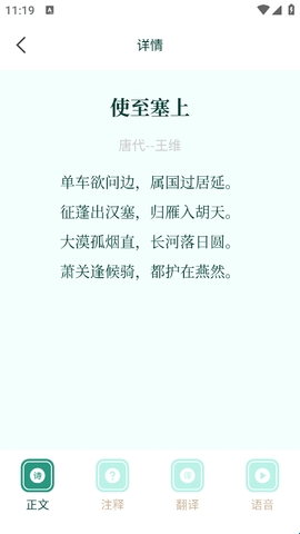 3、这首完整的诗就出来了,还有相关注释、翻译、语音。