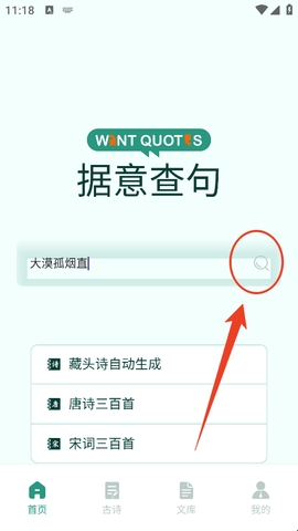 1、例如我现在想找王维的《使至塞上》这首诗,但是只记得“大漠孤烟直”,那么我们就直接在搜索框输入“大漠孤烟直”搜索查找。