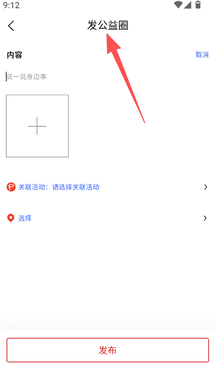 2、点击加号,进入发公益圈页面。