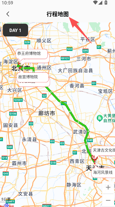 2、支持地图查看功能,行程地图展示路线走向与景点分布,用户掌握自驾路线,出行更顺畅。