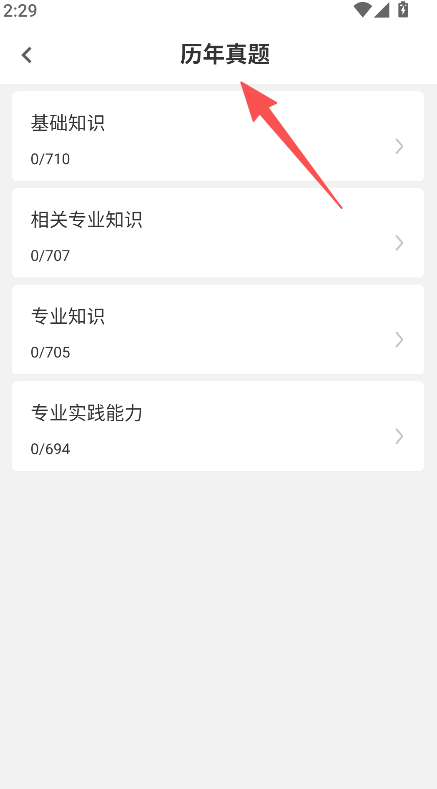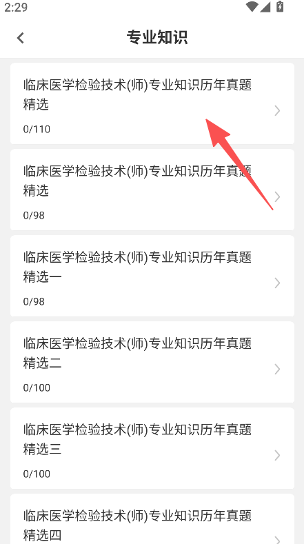 1. 来到历年真题板块,挑选专业知识等模块。