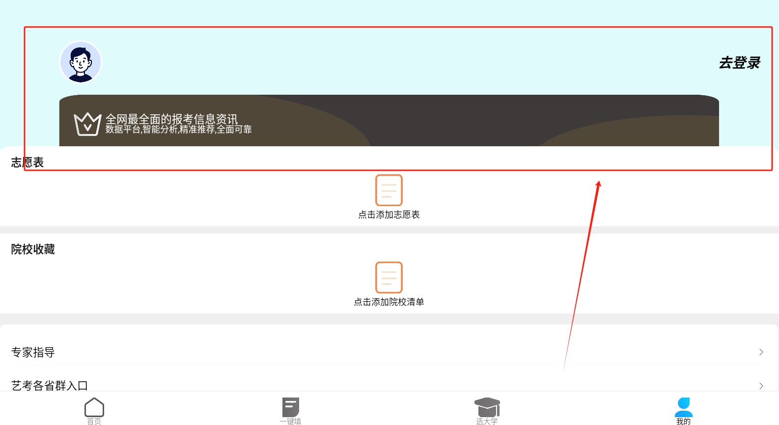 1、下载安装美术志愿宝,打开后注册账号,便可浏览各种艺术类院校信息及历年招生计划,帮助考生提前做好选择和规划。