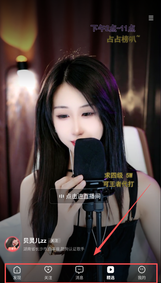 4、想要随时查看已关注的主播动态,可以点击底部的关注选项,浏览他们的最新直播,而在消息页可以查看互动通知。