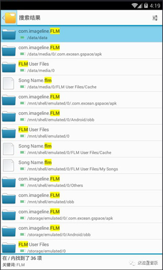 手机方面,在文件管理中搜索FLM,即可见到FLM USER FILES文件夹,把电脑上的FLM工程拖进去,手机就可以读到电脑上做出的工程文件了。