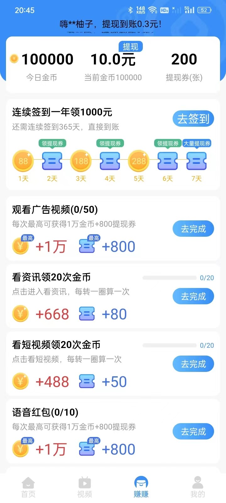 1、有着丰富的每日任务,能够随时阅读资讯刷短视频。