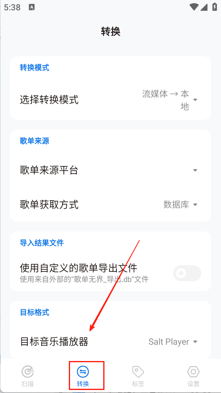 1、在转换界面,选择转换模式并设置目标音乐播放器。确保选择正确的转换模式和播放器。