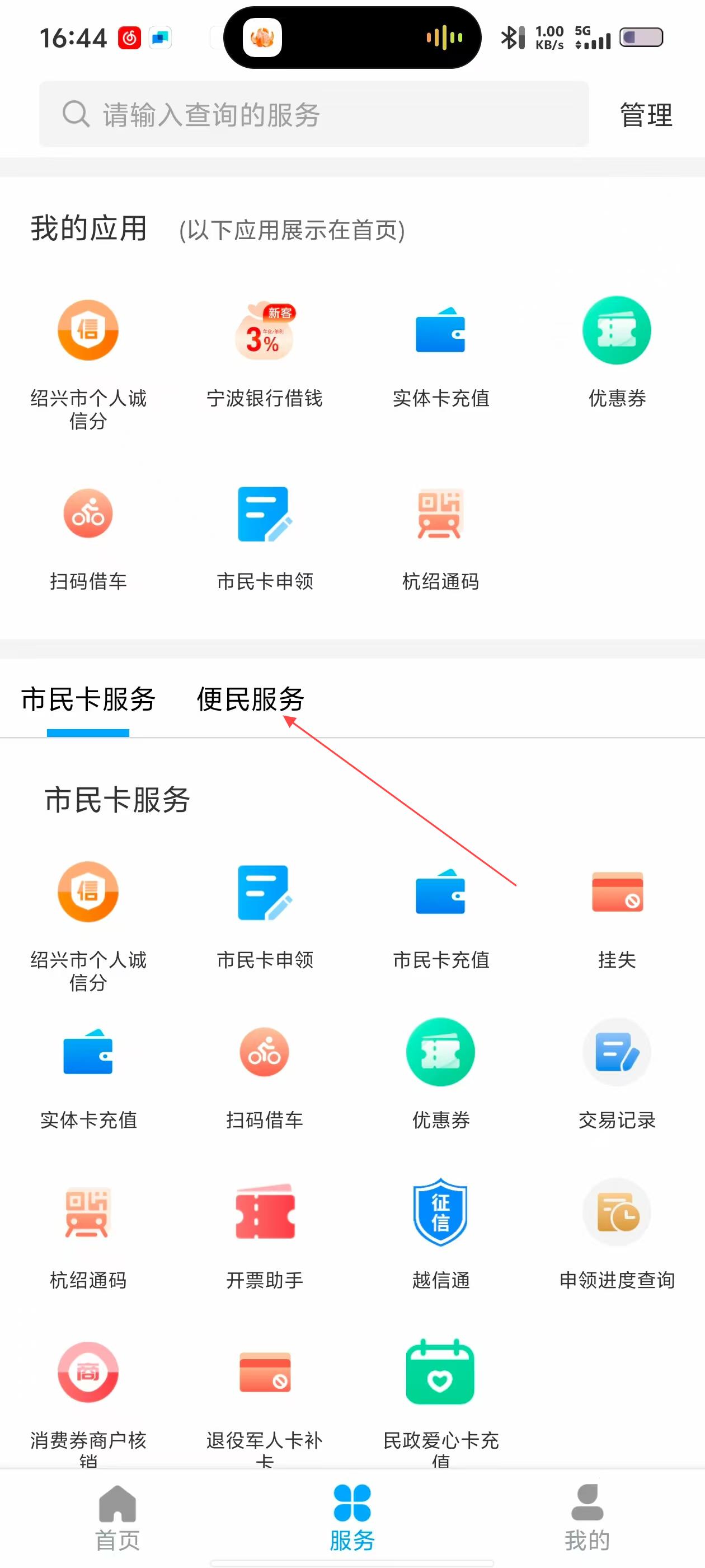 3、在应用列表页,点【便民服务】标签,切换到便民服务功能区。