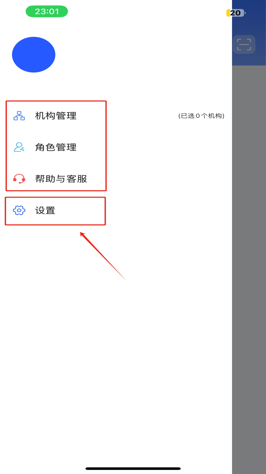 2、在应用主界面,点击“机构管理”或“设置”进入管理选项。