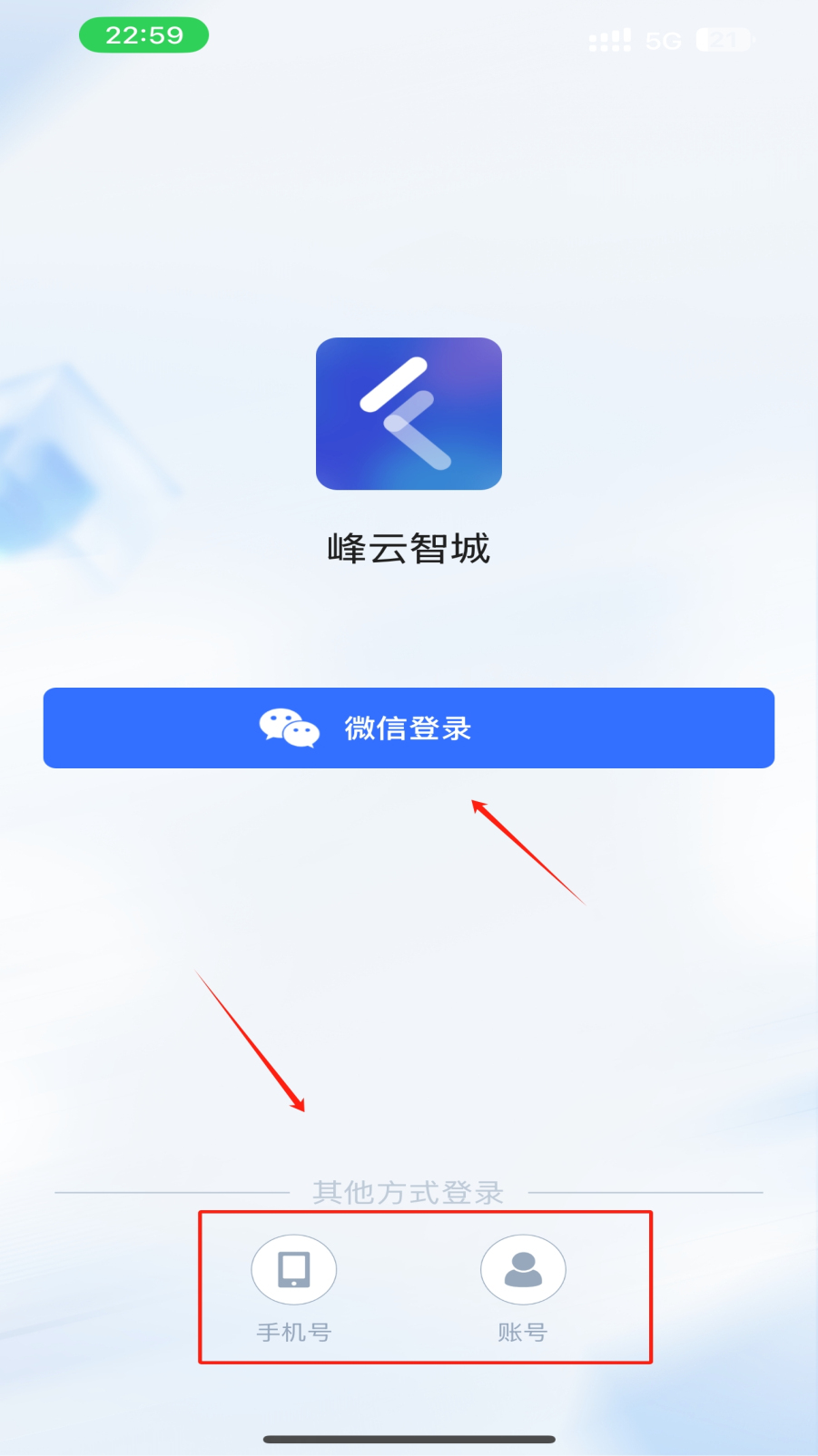 1、点击“微信登录”按钮,或选择“手机号”或“账号”进行登录。