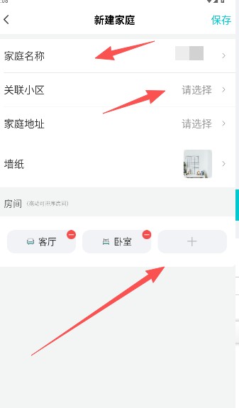4、填写家庭名称、关联小区、家庭地址等信息,同时创建需管理的场景,保存后即可添加成功。