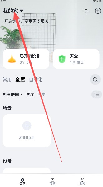 2. 在智家页面中,找到“我的家”列表,点击以展开相关选项。