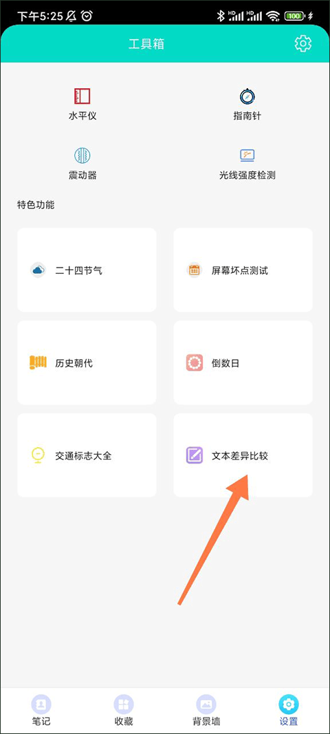 2. 在设置页面里,找到“特色功能”板块,选中“文本差异比较”后进入。