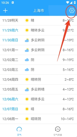 1、进入软件后我们先要添加城市,将你常住的城市加入进去,方便后面查看天气。