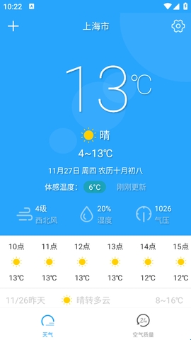2、降雨量、温度、空气质量、风向、风力、日落、日出、湿度、生活指数详细呈现。