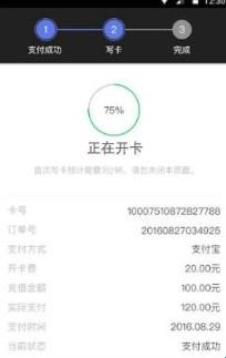 3、支付完成后,进入“正在开卡”页,交通卡公司将向手表中写入卡片数据;开卡过程可能需要较长时间,在此期间请保持手机联网和同手表的蓝牙连接,不要离开本页面;若写卡失败,可对异常订单进行重新操作,重试即可;