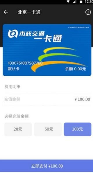 6、在充值页,可选择充值金额,Ticpay提供20、50、100三种充值额度;