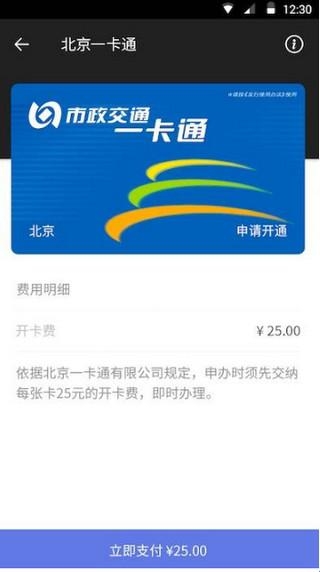 2、选择所需要的交通卡,点击进入开卡界面后,支付开卡所需的开卡费;(深圳通可以在开卡的同时进行充值)