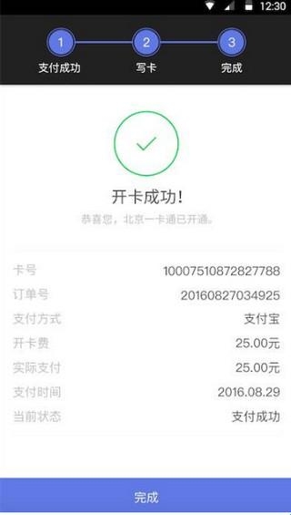7、支付完成后,交通卡公司将向手表中写入充值数据,过程中请保持手机联网和同手表的蓝牙连接,不要离开本页面;若写卡失败,可对异常订单进行重新操作,重试即可;
