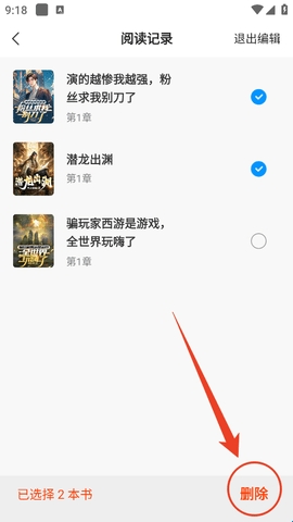 4、然后勾选你要删除的阅读记录,点击下面的“删除”就可以了。