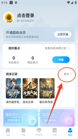 2、然后点击“阅读记录”旁边的“更多”。