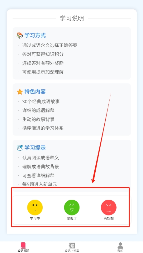 3、在学习过程中,可以结合所学成语进行练习,系统会提供相关的练习题,以巩固用户的记忆效果,确保能灵活使用成语。