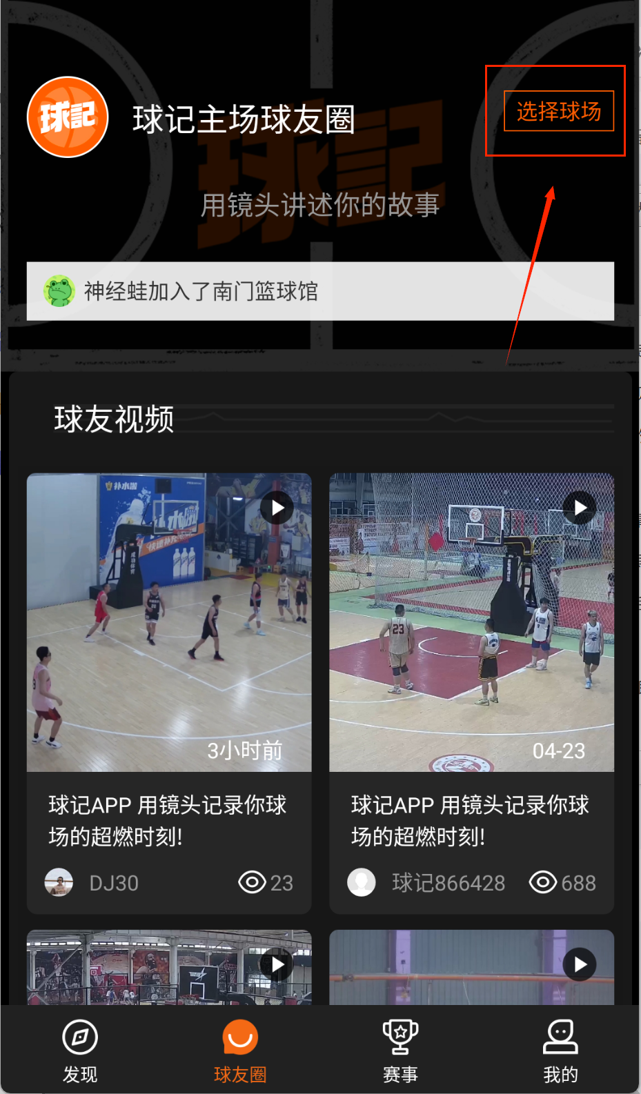 1、打开球记app后选择附近球场。