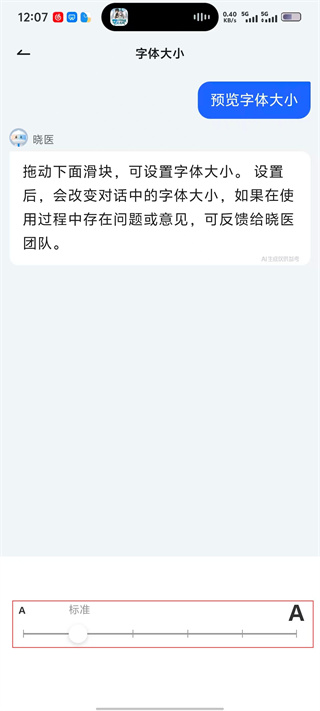 4、拖动字体大小滑块至目标位置,即可完成字体调整,设置后对话内容的字体大小会同步更新。