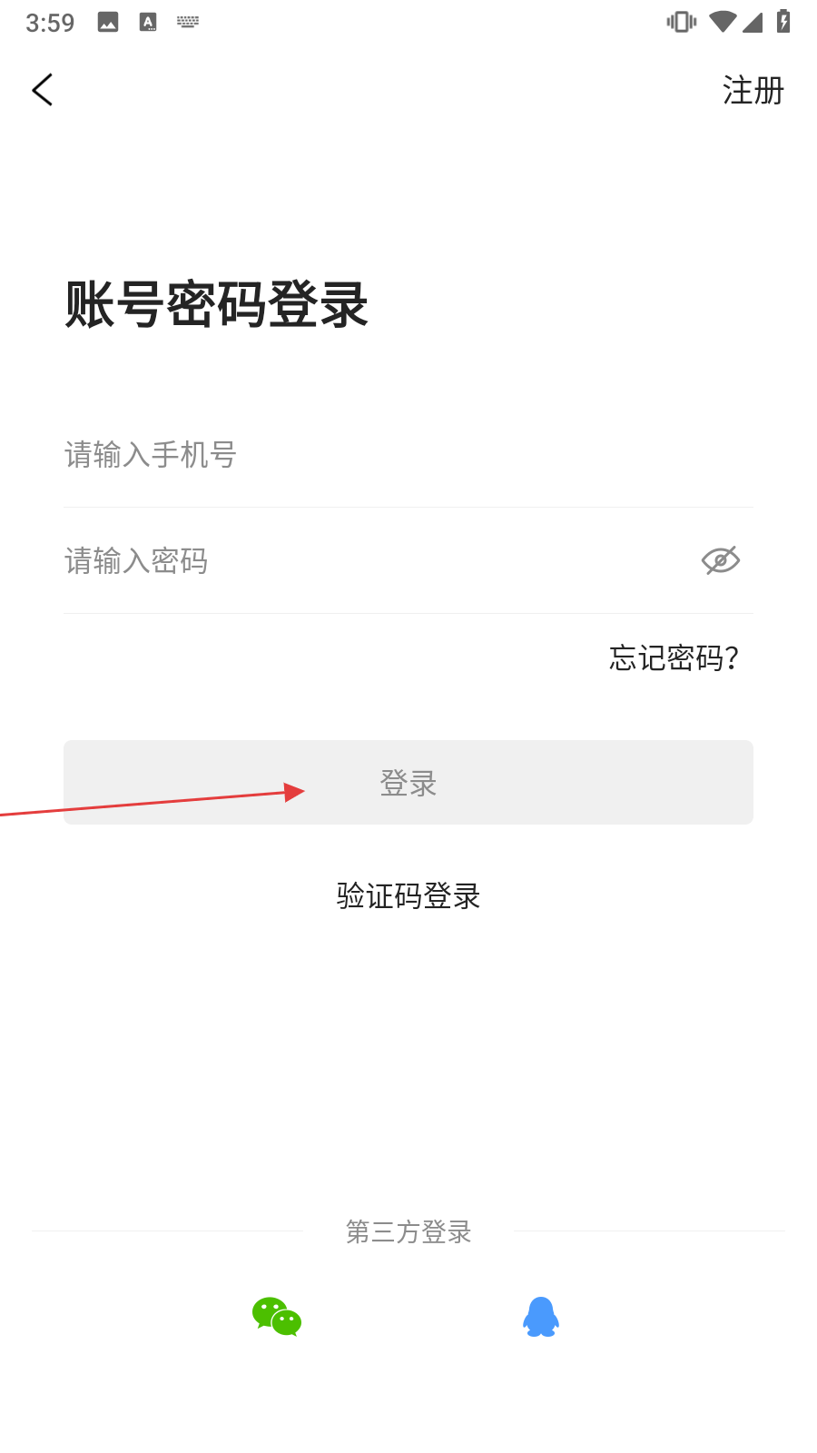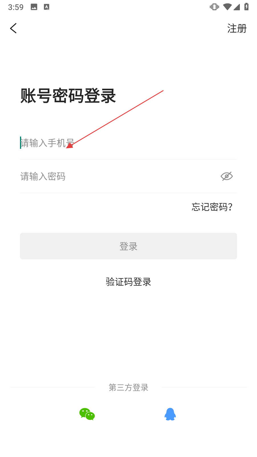 2、在“账号密码登录”界面的【请输入手机号】栏中,输入已注册的手机号码。