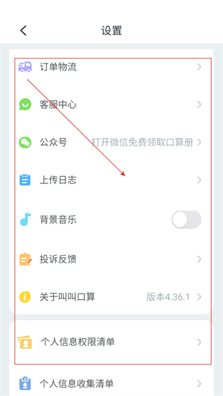 3、在【叫叫口算】设置界面,可管理订单物流、客服中心等,点击【上传日志】可在APP使用异常时帮助定位和修复问题。