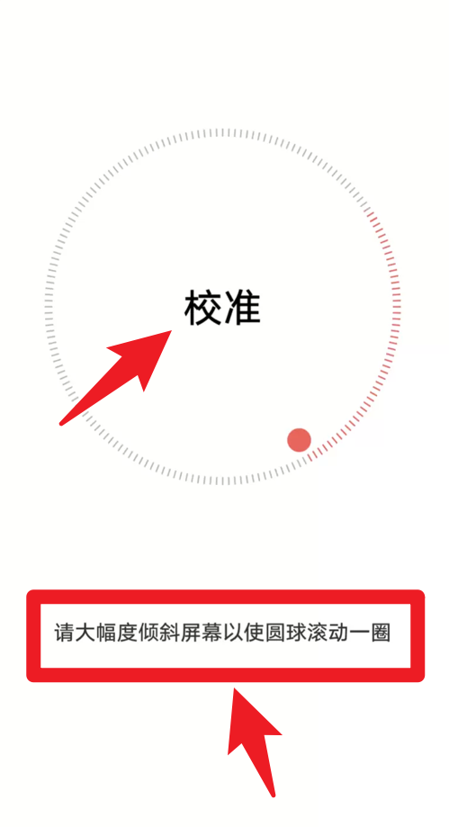 4、当发现方向不准时,可通过校准功能,大幅度倾斜屏幕让圆球滚动一圈,从而恢复精确度。