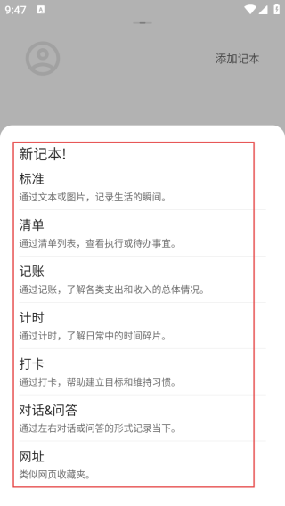 1、打开应用进入首页点击添加记本。
