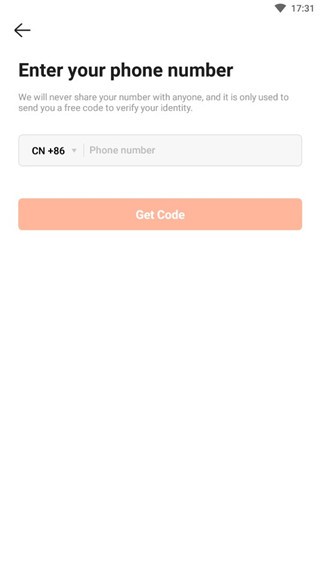 4、选择好地区后输入自己的电话号码即可去注册账号