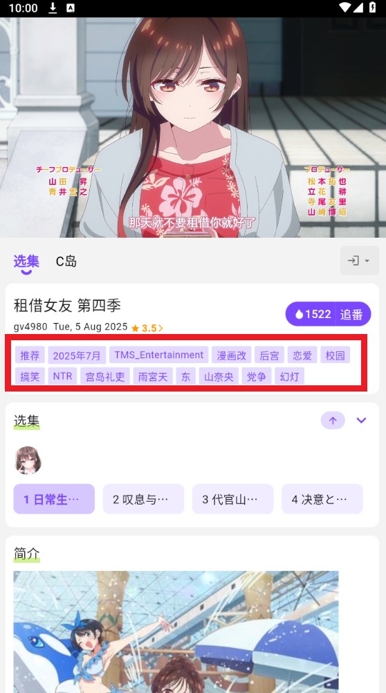 1、每部动漫下方,作者都针对动漫选择了相应的标签;