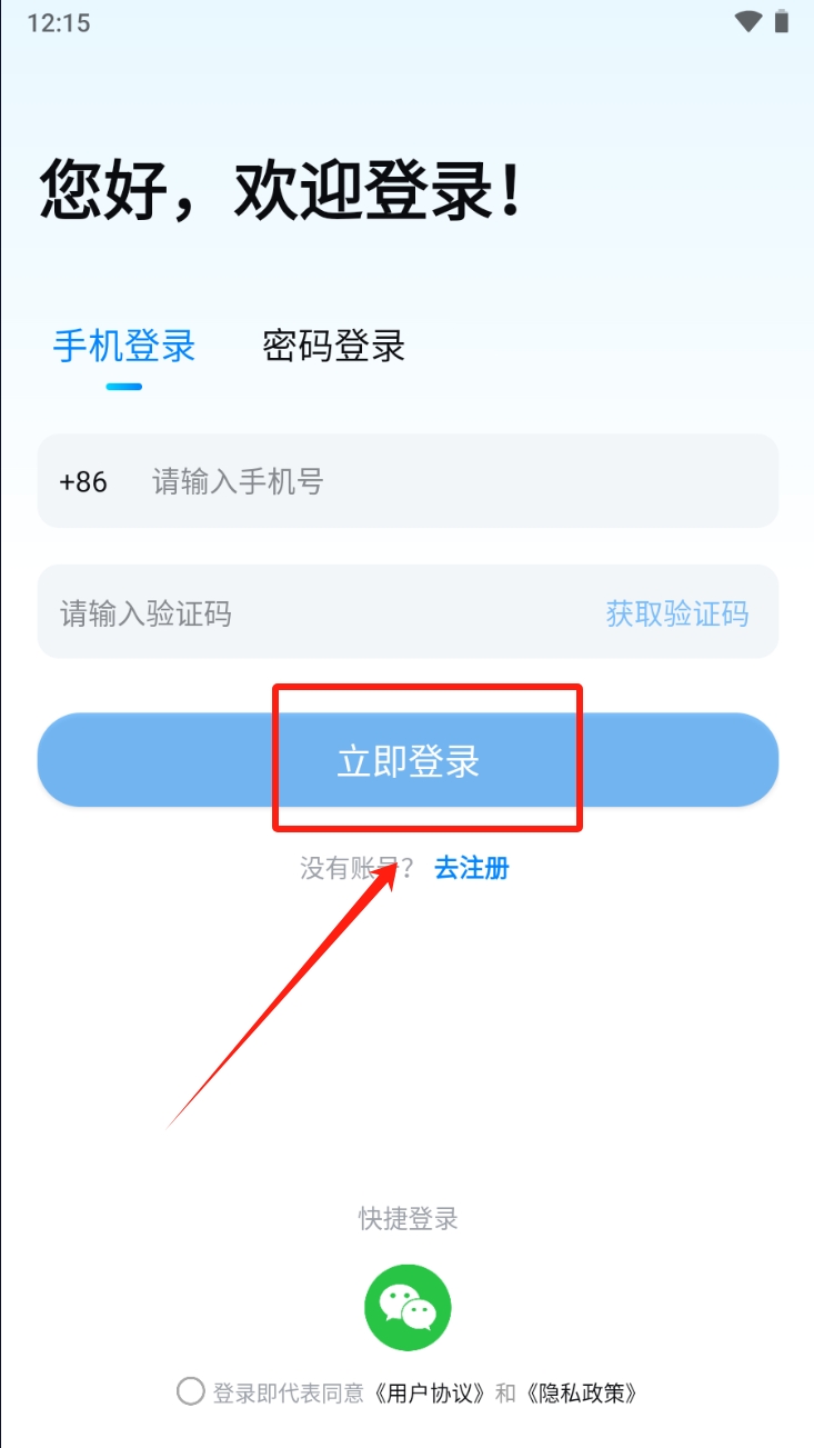 2、进行手机登录:输入手机号和验证码,点击“立即登录”按钮完成登录。