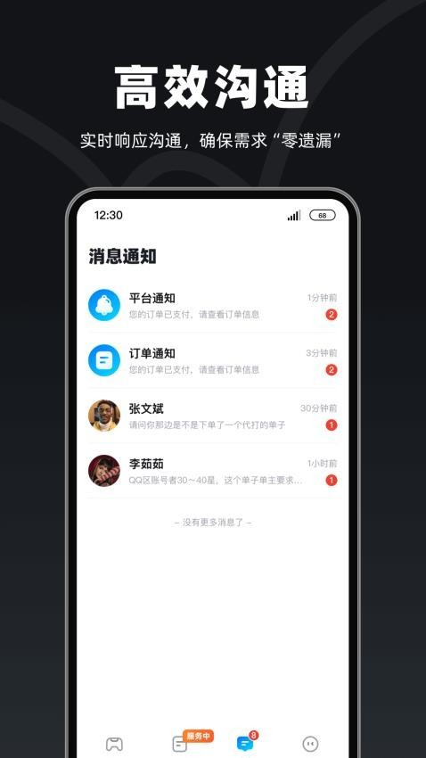 3、服务过程管理:使用内置语音工具与客户保持沟通,按照订单要求完成游戏陪玩或代练任务,确保服务质量。